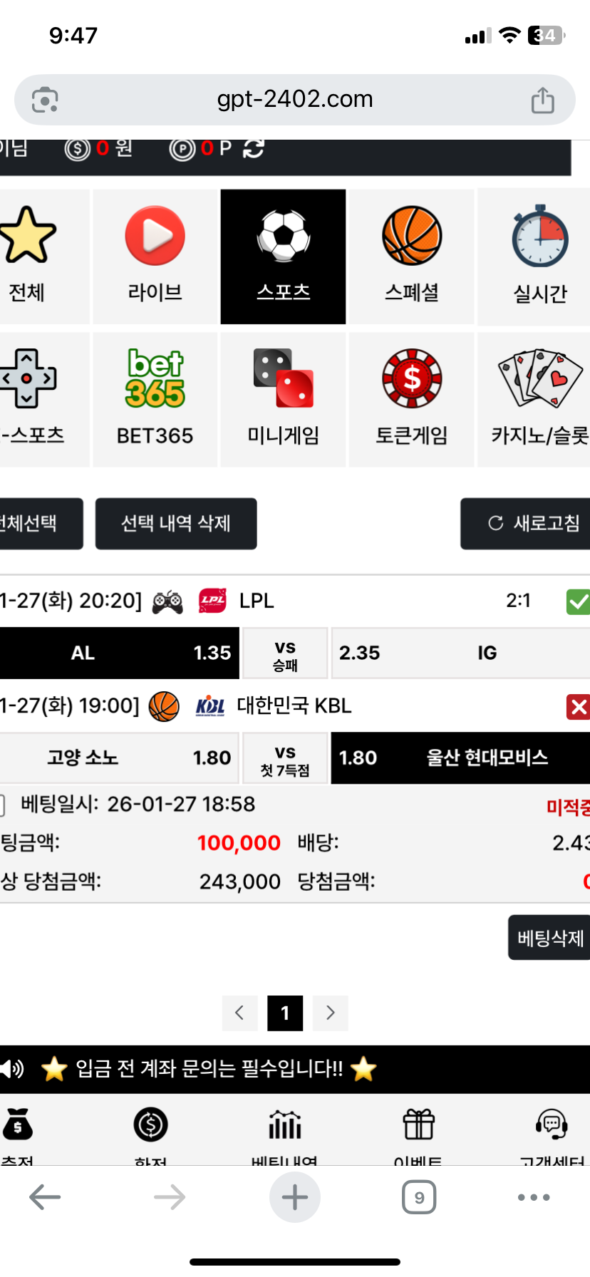 공지 미니게임 배당이 변경 되었습니다.