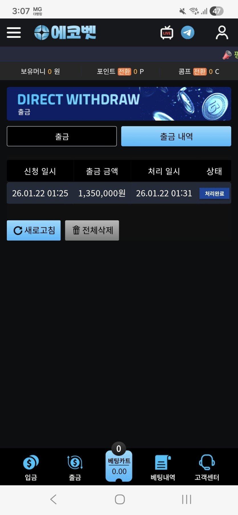 에코벳을 경험해보니, 역시 메이저다운 품격과 안정성을 느낄 수 있었습니다. 언제나 기대를 뛰어넘는 만족감을 선사하며, 즐거움 가득한 시간을 보낼 수 있었어요. 게임의 재미와 함께 만족스러운 결과까지 얻