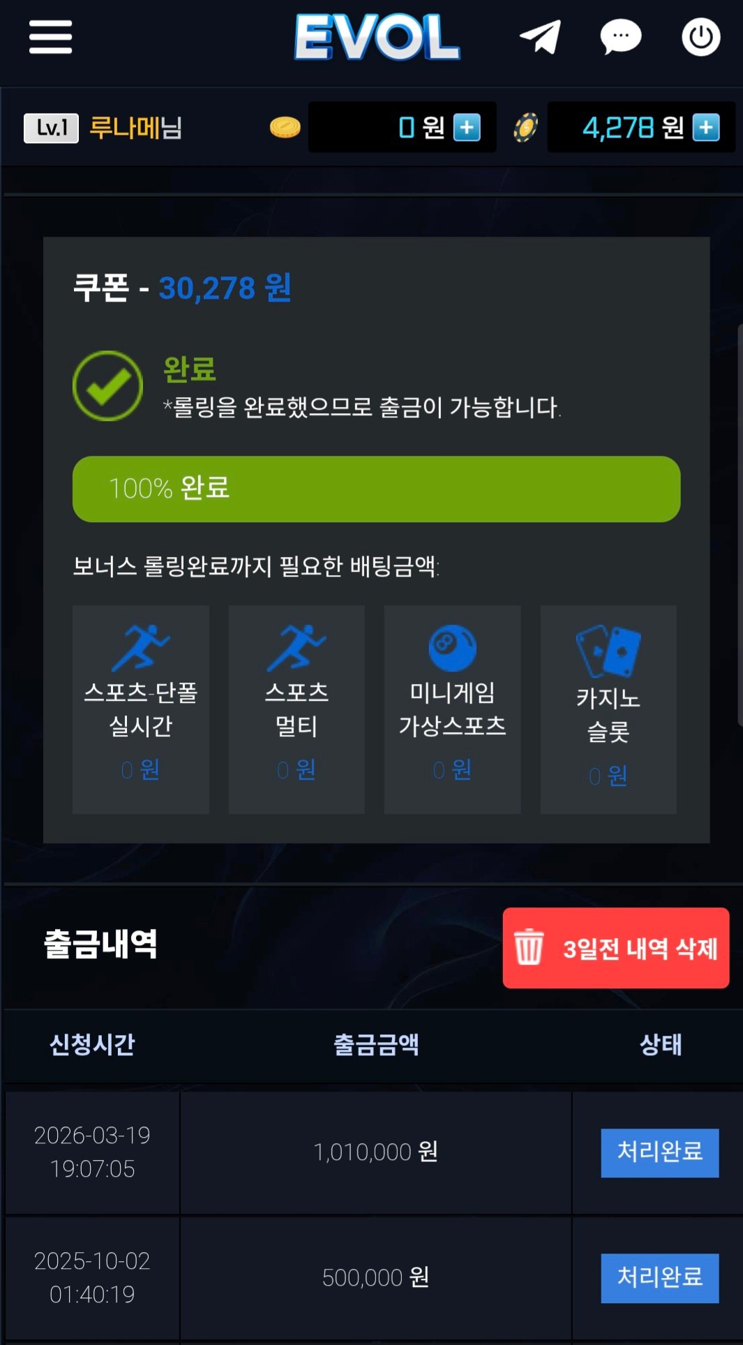 안전성 보장 " 코코몽 " 무한 입플 / 최대 40% 첫충 / 블랙 가능 / 루징 10%